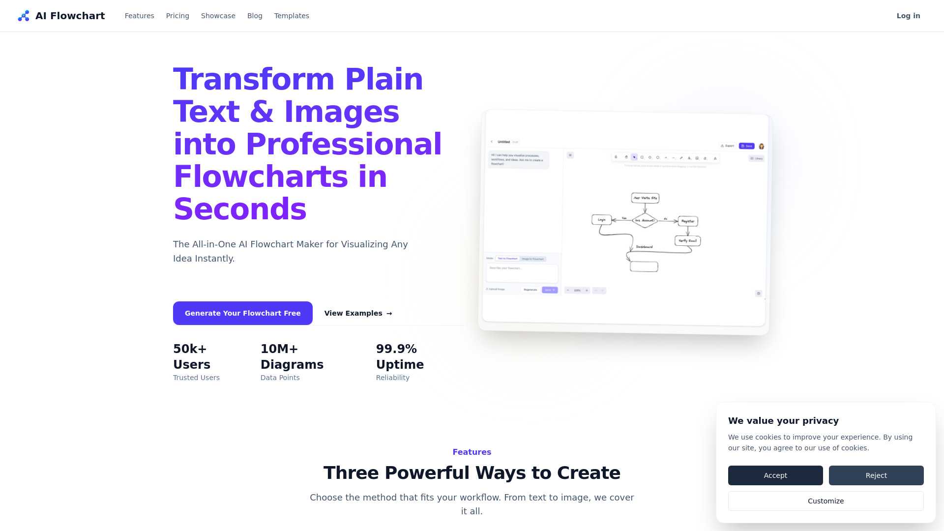 - Text to Flowchart: Describe your process in plain text. The AI will generate a flowchart based on your description.