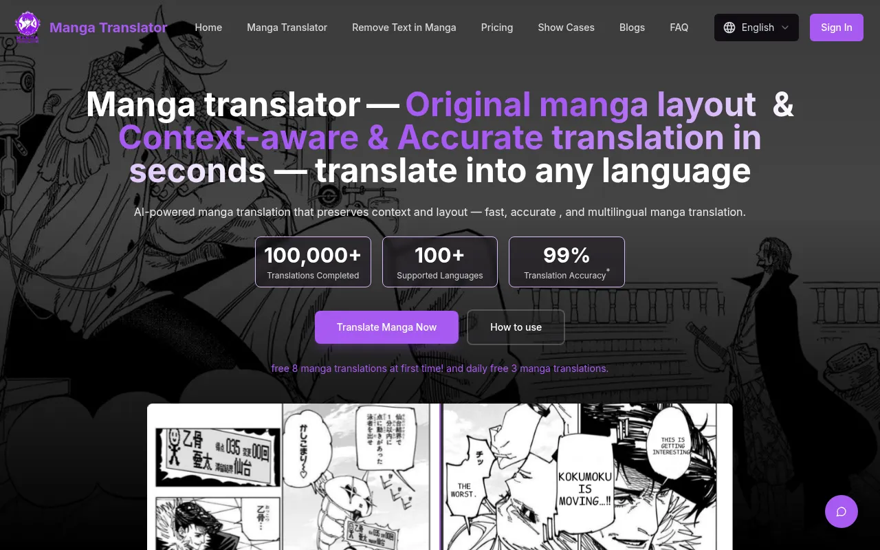 AI-powered manga translator supporting 100+ languages with original layout preservation.