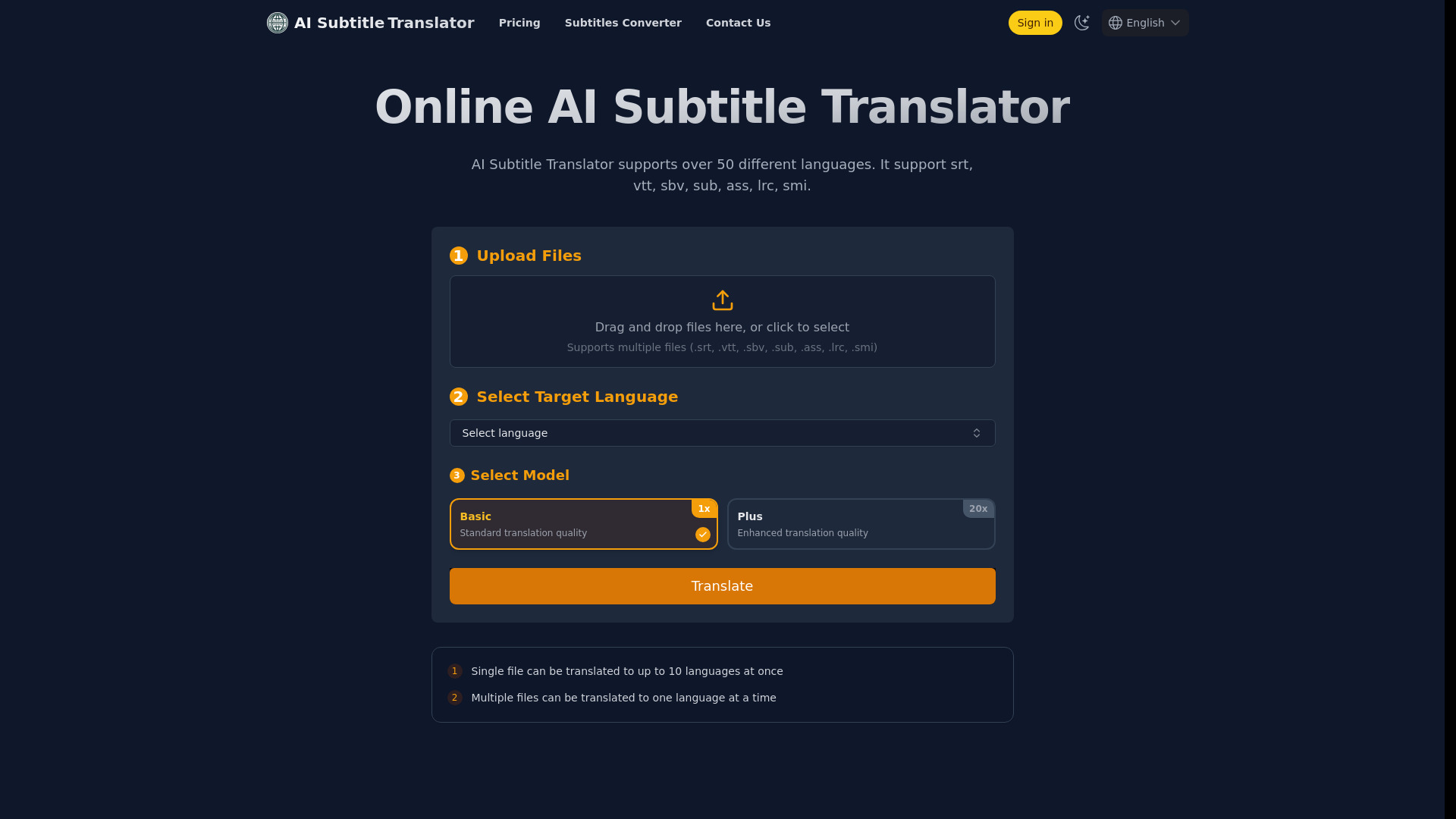 - How do I use the AI Subtitle Translator? To use the AI Subtitle Translator, simply upload your subtitle file, select the target language, and click the translate button. There's no need to select the original language as our system will automatically detect it.