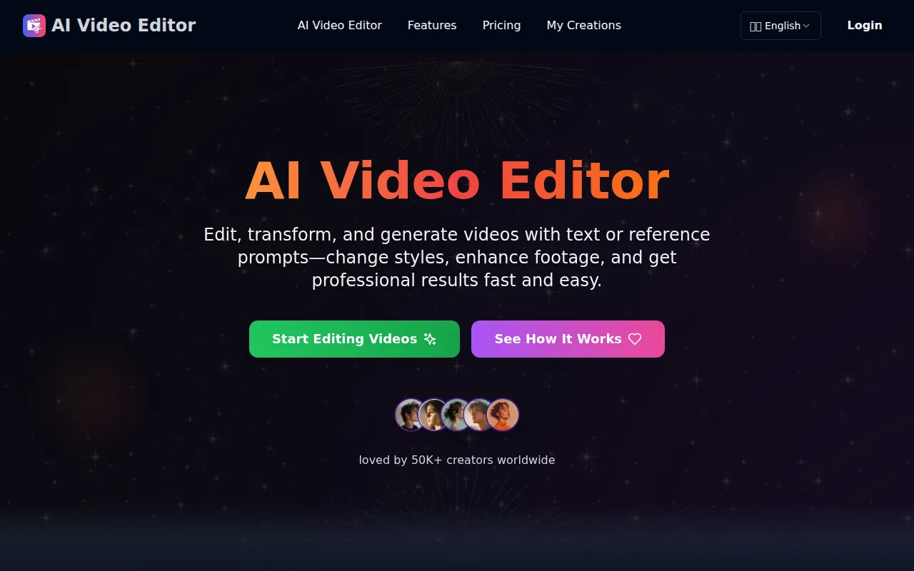 AI Video Editor enables easy video editing and transformation via AI-powered text and image prompts.