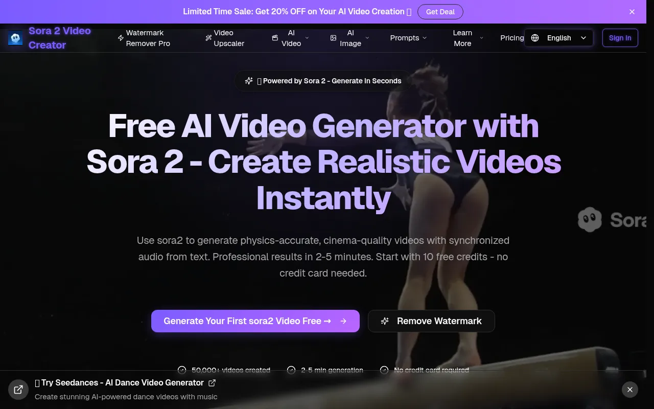 Sora 2 AI video generator creates realistic, physics-accurate cinematic videos with synchronized audio from text.