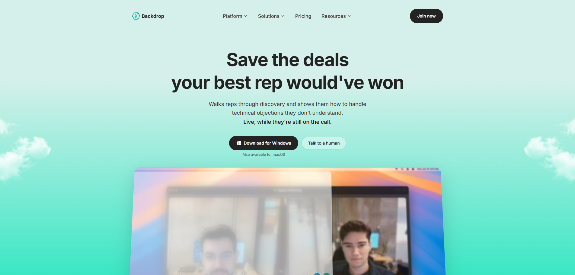 Backdrop is an AI-powered real-time sales enablement platform designed to assist sales representatives during live sales calls. It provides crucial questions and answers to reps as they are on the call, ensuring they can handle objections and conduct effective discovery.