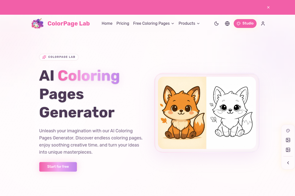 ColorPage Lab is an AI Coloring Pages Generator that creates unique, high-quality, printable coloring pages instantly. It allows users to generate coloring pages from text prompts or by converting their own photos and drawings into line art.