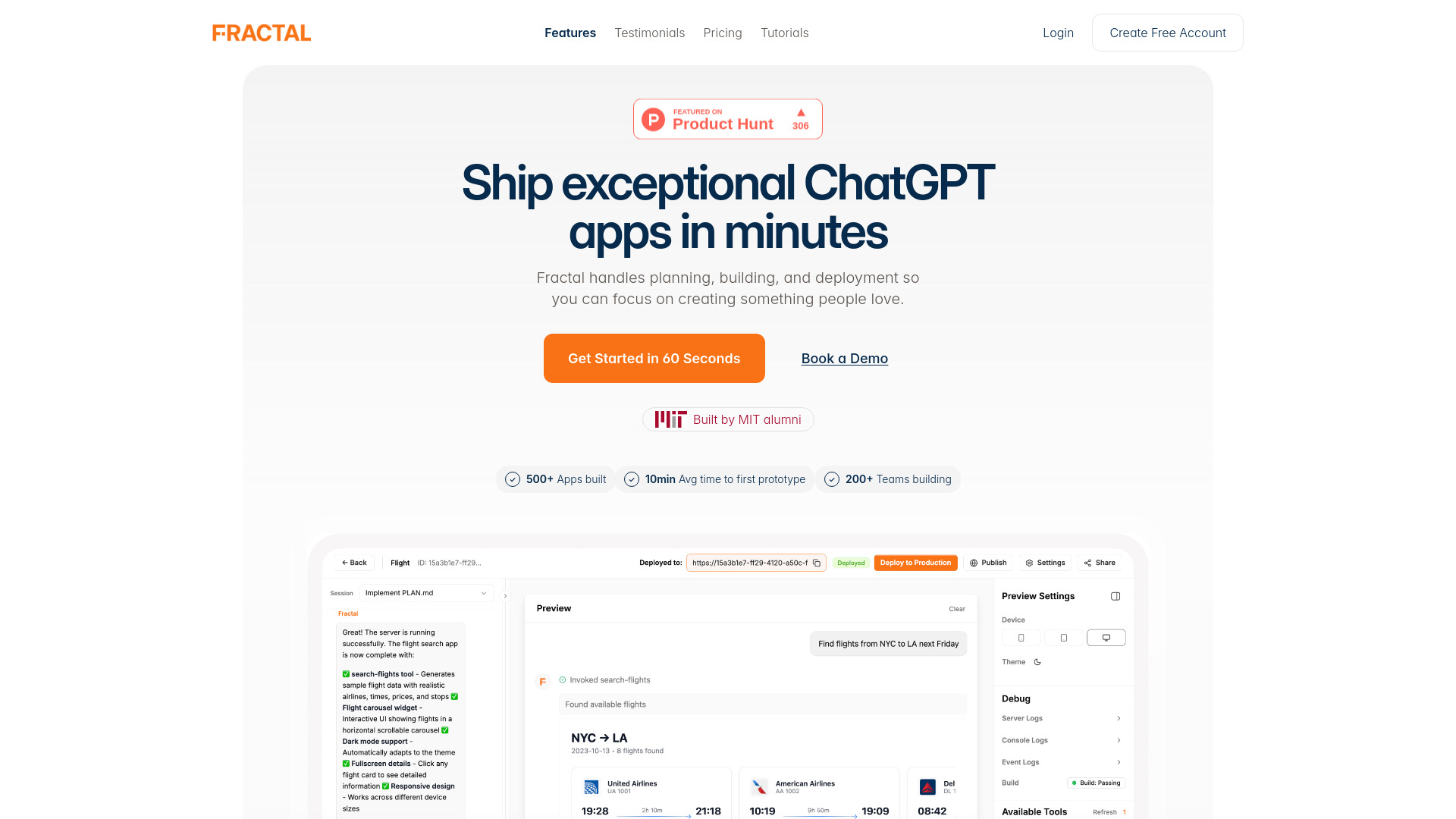Fractal is an AI platform designed for the rapid building, testing, and deployment of ChatGPT and MCP applications.
