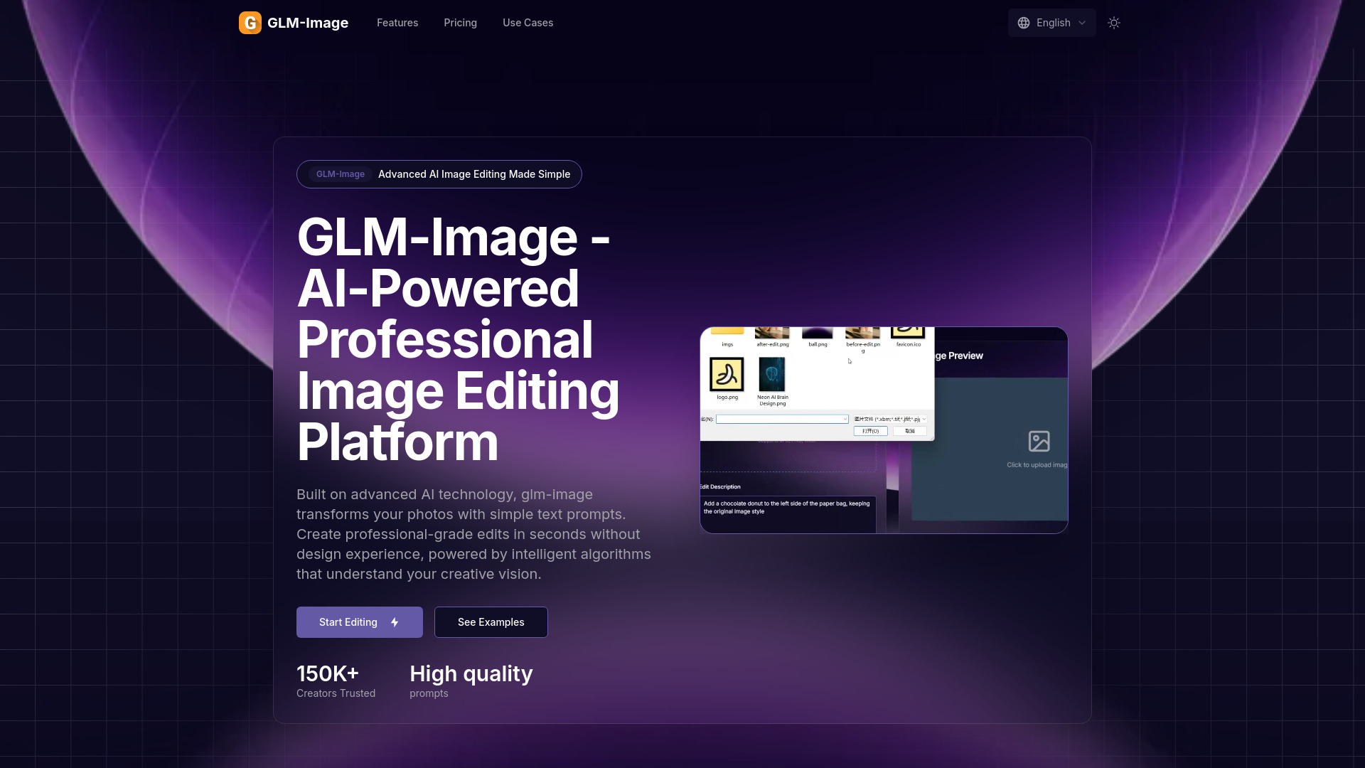 GLM-Image is an AI-powered professional image editing platform that transforms photos using text prompts. It allows users to create professional-grade edits in seconds without requiring design experience, leveraging advanced AI algorithms to understand creative visions.