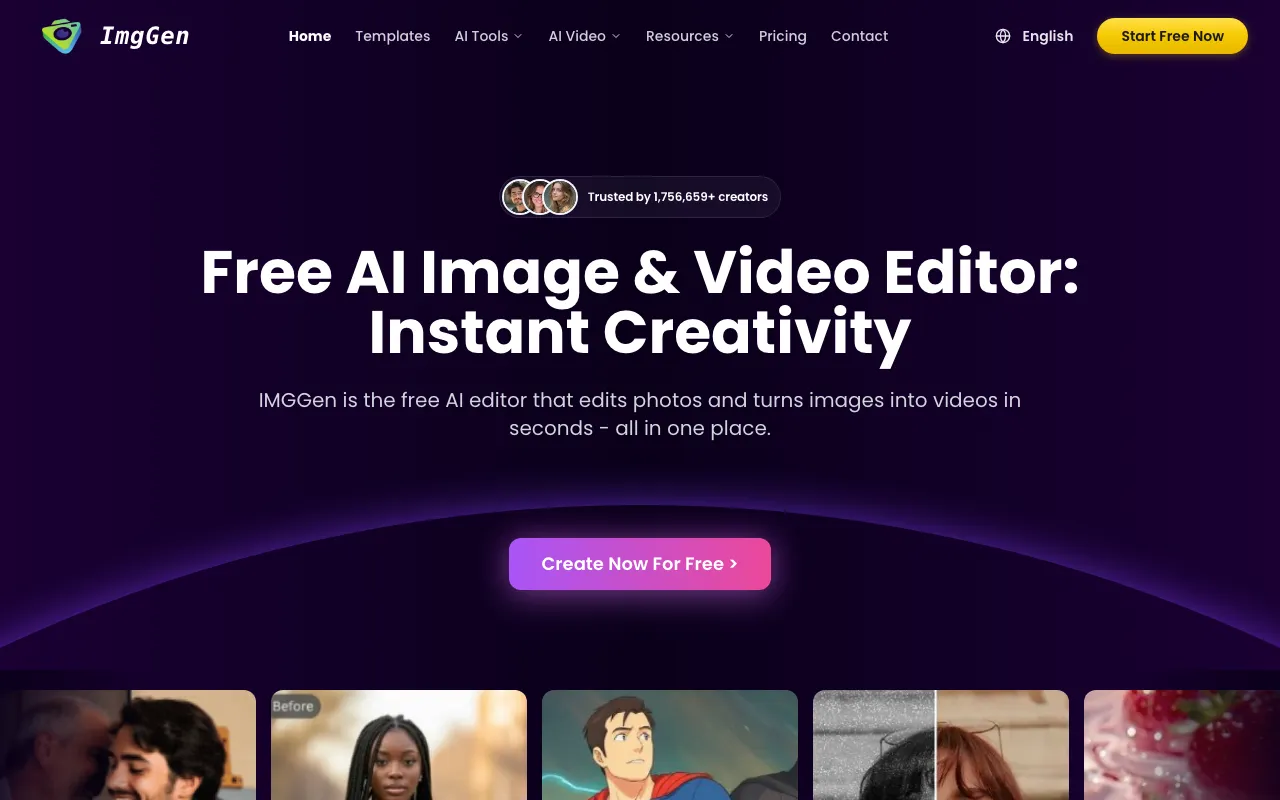 IMGGen is a powerful free AI image and video editor trusted by over 1.7 million creators worldwide. It offers a comprehensive suite of AI-powered tools that make professional photo editing accessible to everyone—no software downloads, no signup required. Key capabilities include: Image Editing: One-click background removal, object and watermark erasing, AI photo enhancement, and color correction. It serves as an excellent free Photoshop alternative for quick, professional edits. Style Transformation: Convert photos to stunning Ghibli-style anime art, apply artistic effects, transform sketches into polished designs, and create stylized portraits. Photo Restoration: Restore damaged or faded old photos, colorize black-and-white images, and sharpen blurry pictures using advanced AI correction. Face Tools: Swap faces seamlessly, generate professional AI headshots, create avatars, and add natural smile effects to portraits. Video Creation: Transform static images into dynamic videos, create AI hug videos, and generate text-to-video content perfect for social media. IMGGen processes all images securely in-browser without storing or sharing user data. It's ideal for content creators, marketers, students, small business owners, and everyday users looking to create polished visuals quickly and effortlessly.