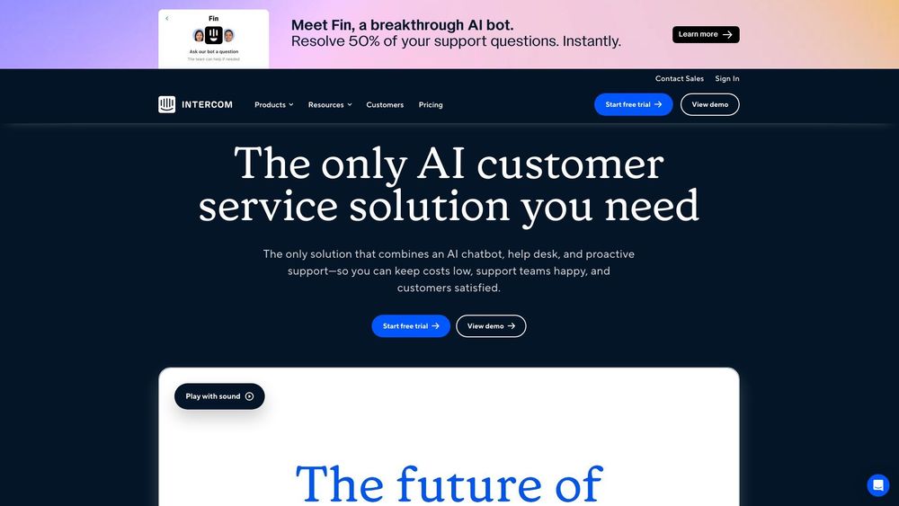 Intercom is the complete AI-first customer service solution. It offers an AI agent, Fin AI Agent, designed to work with any platform, including Tickets, Inbox, Phone, and Help Center.