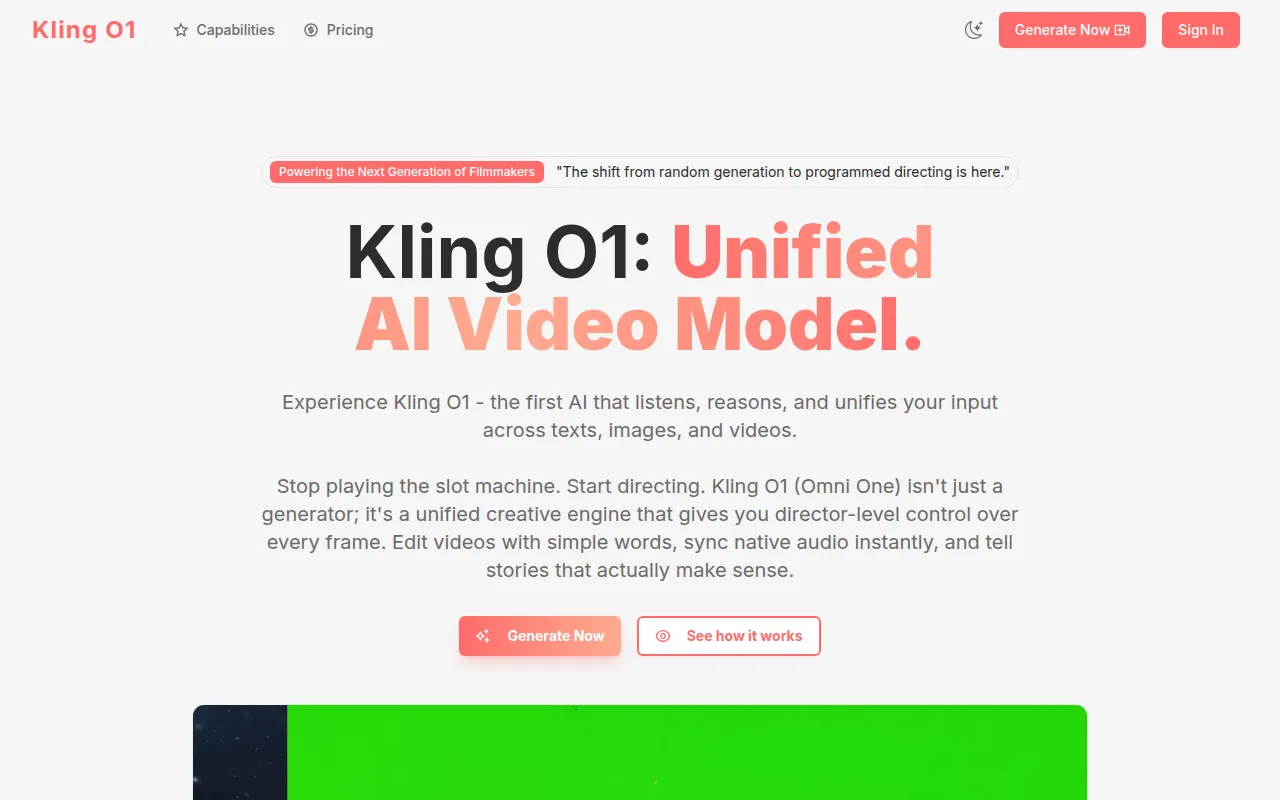 Kling O1 is a unified AI video model offering precise control over video content creation and editing.