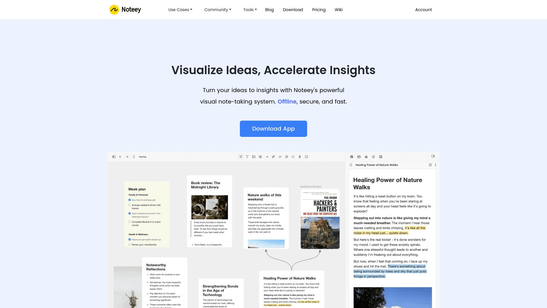 Noteey is a visual note-taking tool that helps you to think, create, publish on canvas. It is a visual note-taking app for connecting dots on complicated topics and organizing your thoughts.