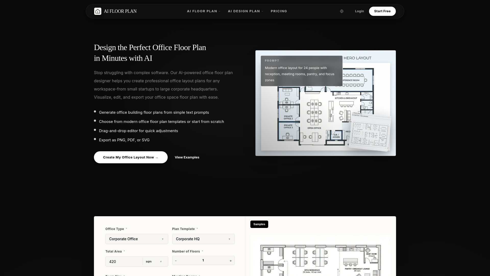 - For Architects, Designers, and Facility Planners: Save time on early-stage drafting with AI-generated commercial office floor plans, then focus on refinement and presentation.