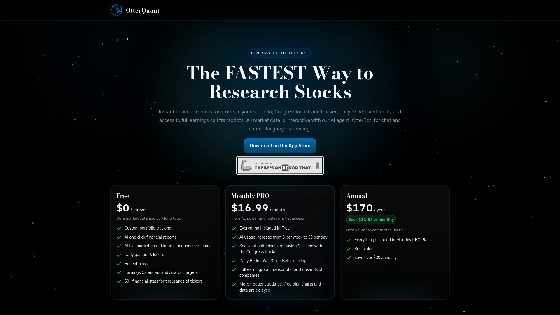 AI-powered stock research platform featuring Congressional tracking and natural language screening.