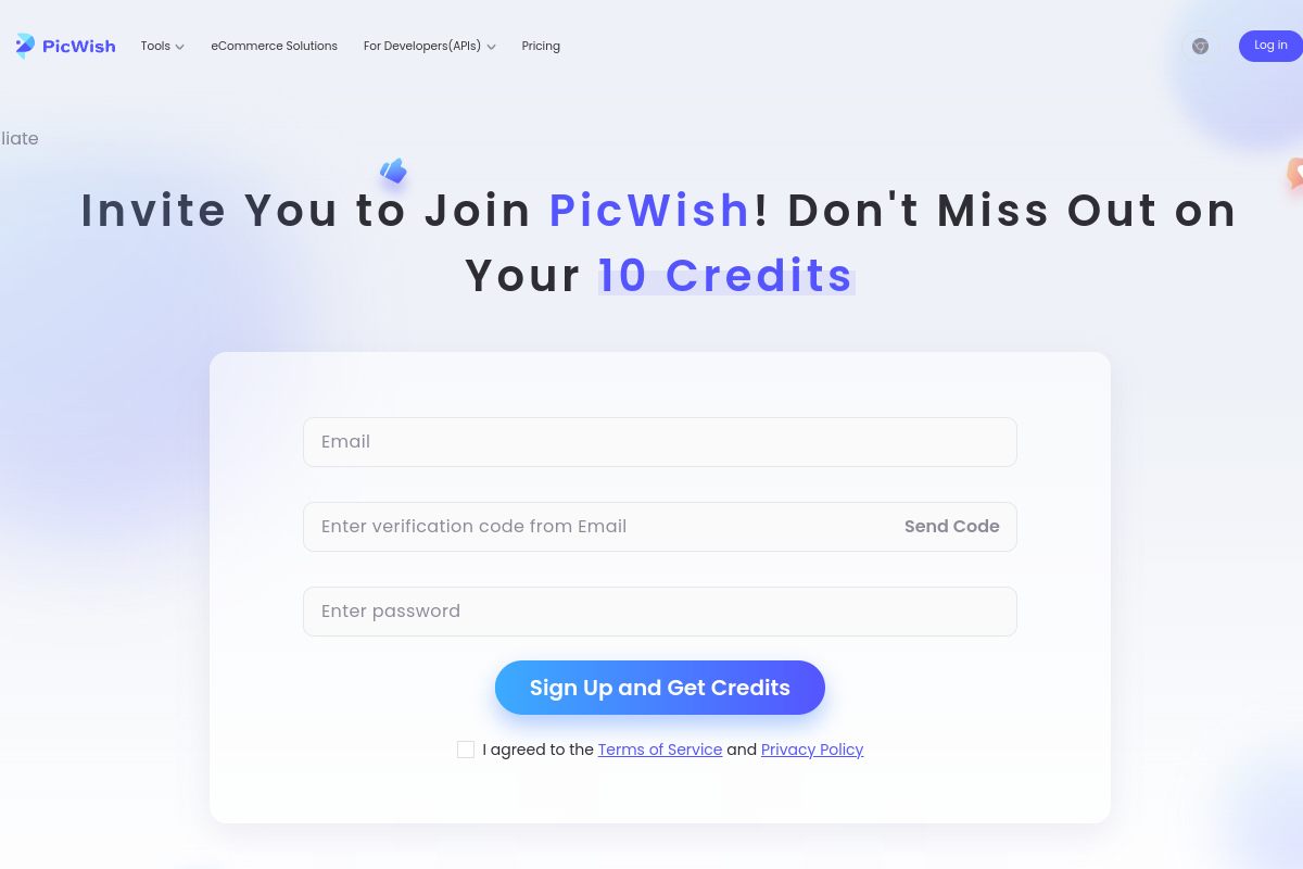 - Earn free credits by sharing PicWish on Twitter or referring others.