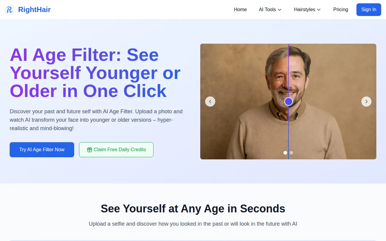 AI Age Filter uses AI to show realistic younger or older versions of your face in seconds.