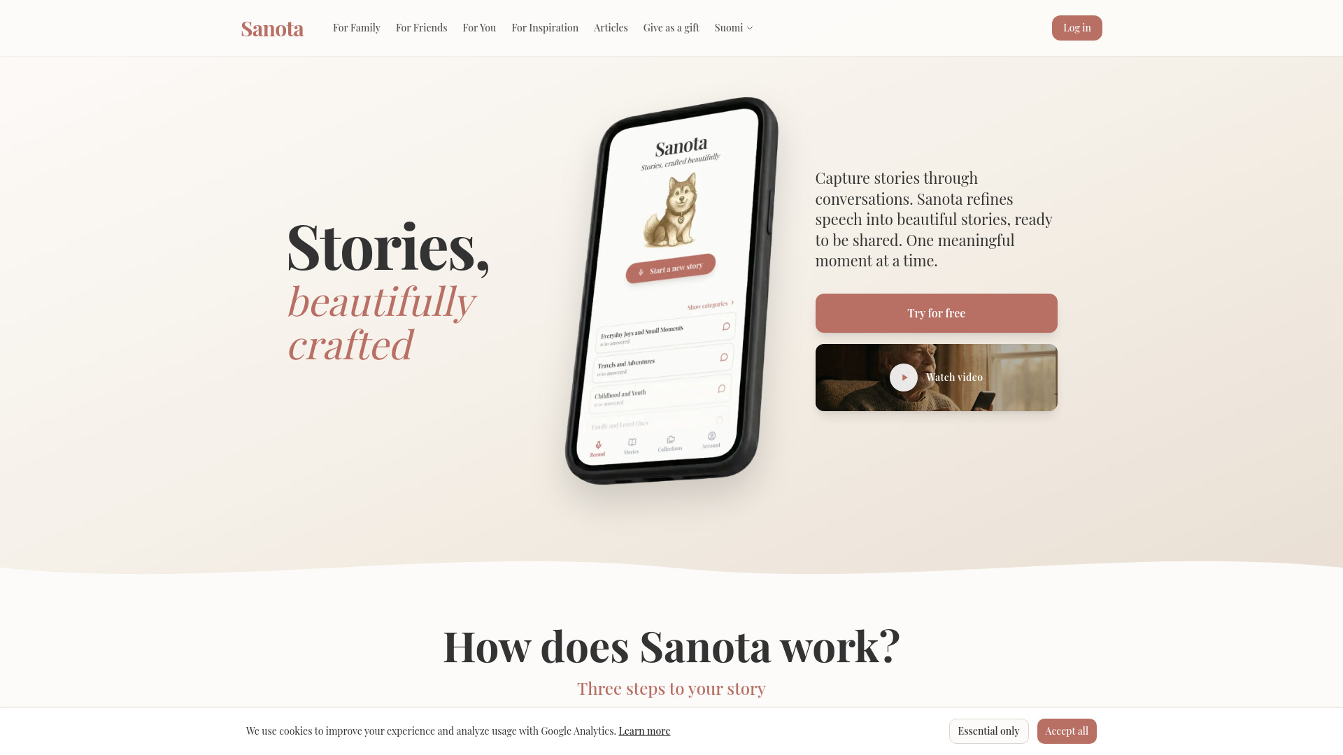 Sanota is an AI platform that transforms spoken memories into beautifully written family stories and legacies. It turns your voice into clear, beautiful text, allowing you to capture memories and ideas easily.