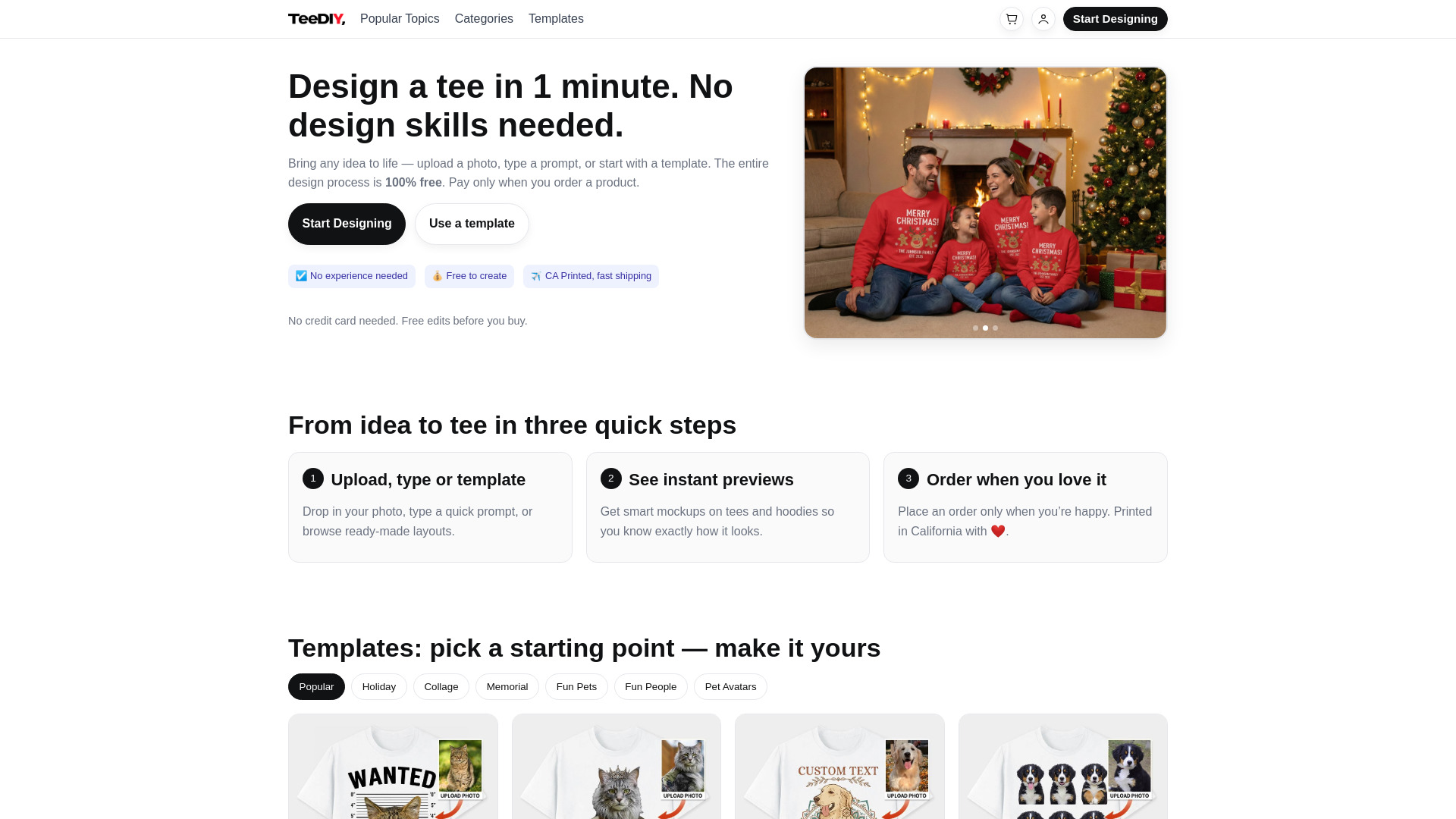 TeeDIY is an easy and free AI tool designed for creating custom apparel and t-shirts. It allows users to design their own unique clothing items without needing any prior design skills. The platform emphasizes a "pay only upon order" model, meaning there are no upfront design fees.