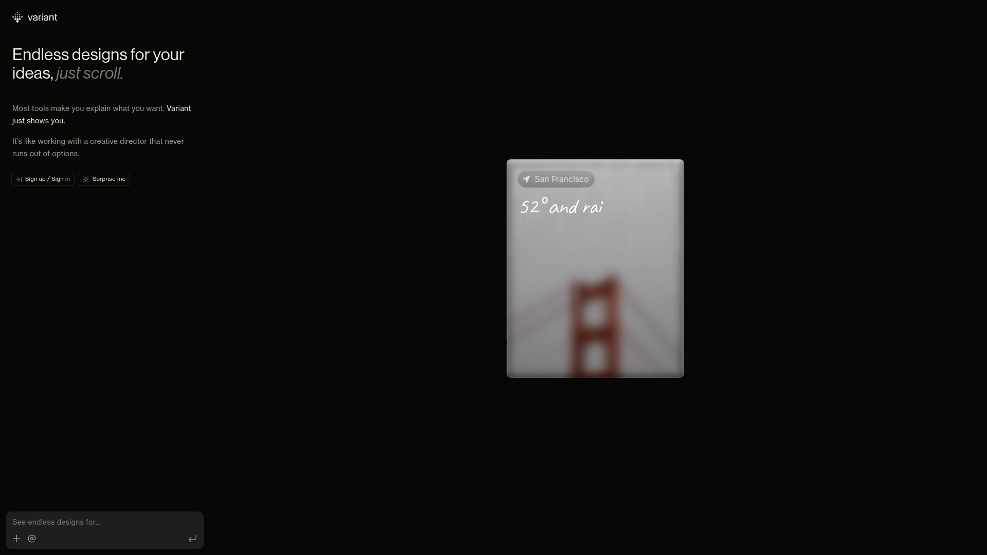 Variant is an AI-powered tool designed to generate an endless stream of app and website design options simply by scrolling.