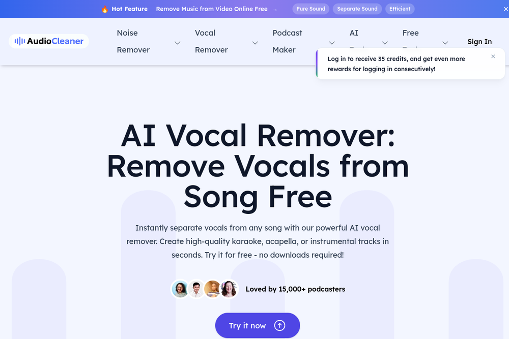 Instantly remove vocals from any song with advanced AI, creating karaoke, acapella, or instrumental tracks effortlessly.