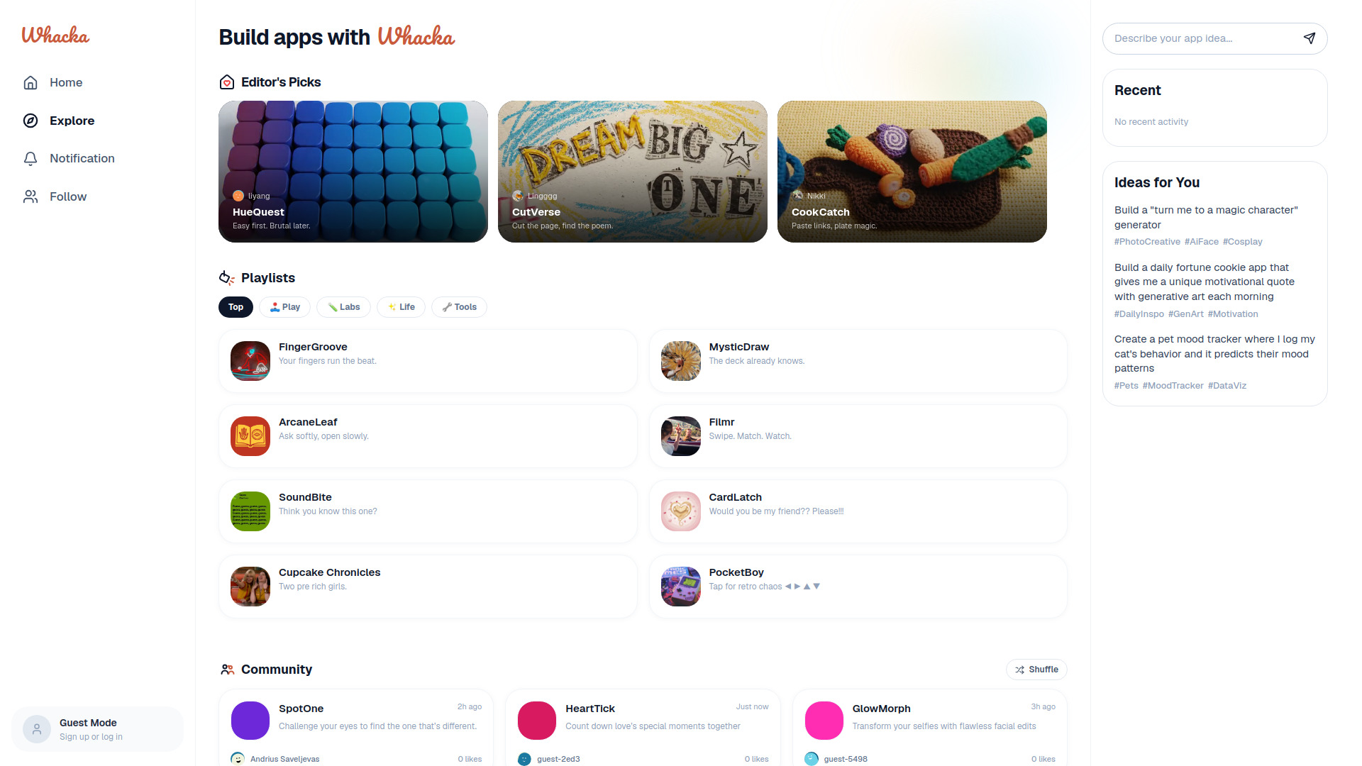 Whacka helps you turn any idea into your own little app, right from your phone.