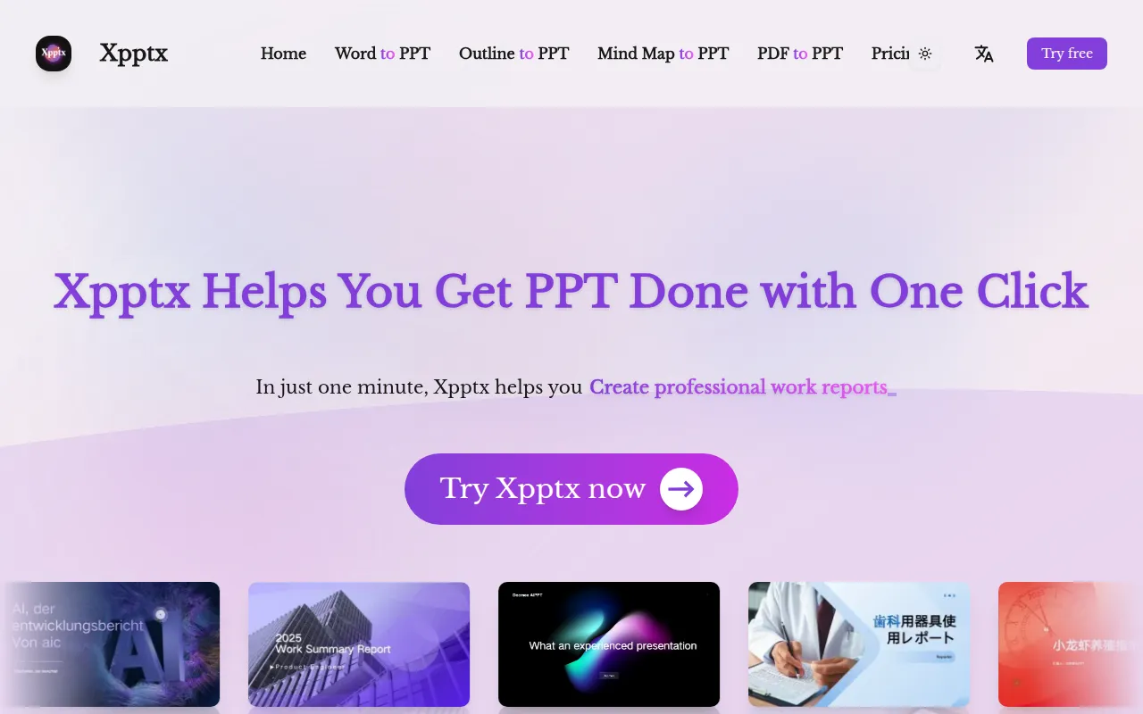 Xpptx provides AI-powered one-click professional PowerPoint creation in just one minute.